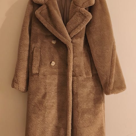 Lämmin tekoturkistakki, jäänyt käyttämättä. Kai-kai 62 ja pituus 104.