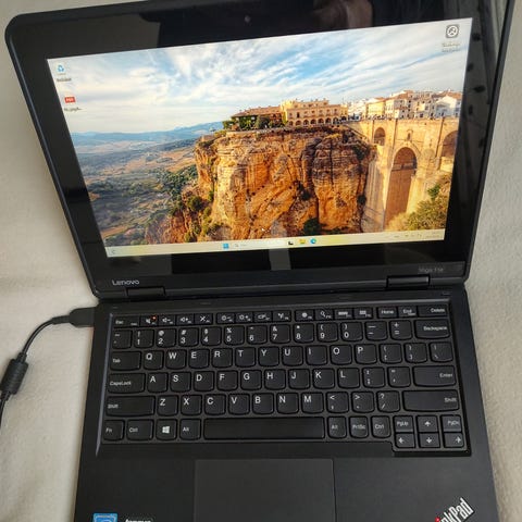 Lenovo ThinkPad Yoga kannettava, jossa kosketusnäyttö taittuu tablet-tilaan. Näyttö full-Hd 13.3". Tässä pyörii Windows 11 aidosti.