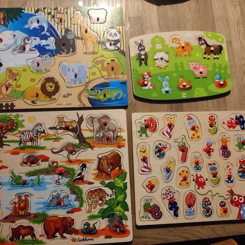 7 kpl lasten puisia palapelejä, kaikki palat tallella ja ehjiä