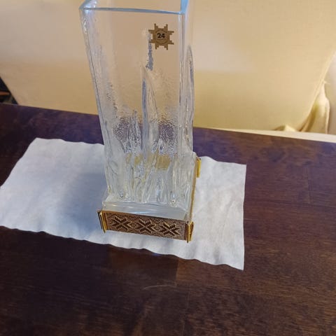 Kumelan Liekki maljakko, kork 23 cm suuaukon leveys 9,7 cm. Ehjä, pohjassa pieniä siirtelyjälkiä. Kaiverrus. Pohjassa kaiverruksia E. WÄNNI KUMELA FINLAND.