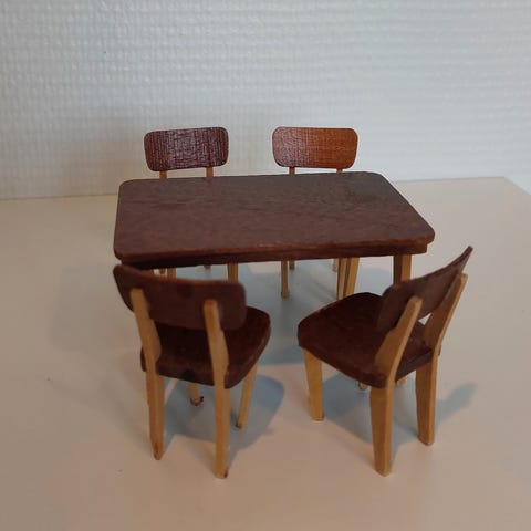 Harmillisesti yhden tuolin jalka on katkennut, mutta pysyy silti pystyssä.