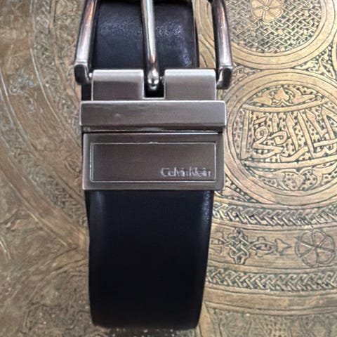 Calvin Klein miesten vyö mustaa nahkaa, koko 95/40. Vyössä on metallinen solki ja painettu Calvin Klein -logo.