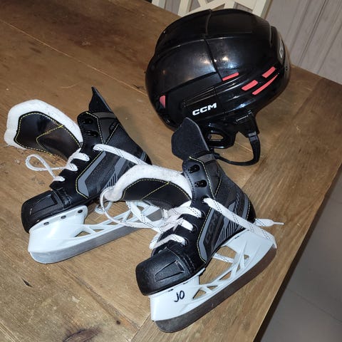 Myydään kuvassa olevat lasten Ccm luistimet koko 30 ja kypärä Ccm koko xs.Hinta yhdessä 15e.