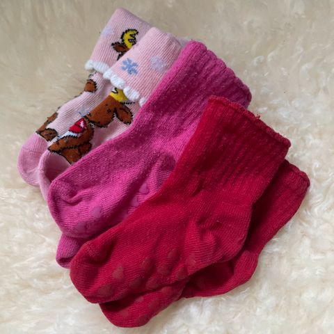 Kuvassa keskellä olevst sukat,joissa on yksi iso sydän,ovat käyttämättömät.