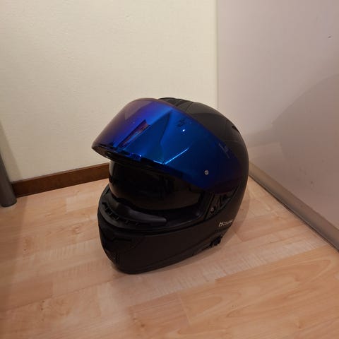Course Sense moottoripyöräkypärä musta. Mukana tulee suojapussi ja vaihdettava visiiri. Kypärässä näkyy käytön jälkiä. Kokoa M (57-58cm)