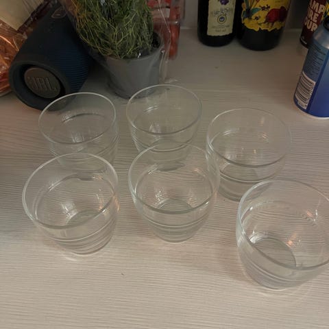 Lahjoitetaan kuvan mukaiset lasiastiat. En mittaile.