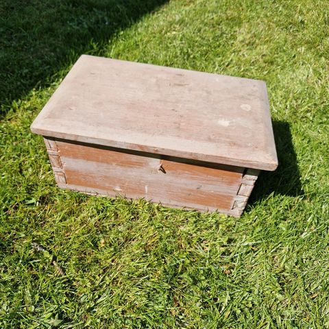 Vanha puuarkku, kaipaa uutta maalipintaa, muuten kunnossa, avain tallessa ja lukko toimii.