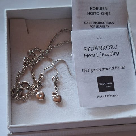 Myytävänä Kalevala Korun hopeiset Pustan sydän nappikorvakorut.