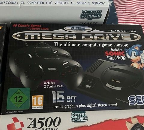 Toimiva aito Sega minikonsoli, mukaan ei tule johtoja, ohjaimia eikä virtalähdettä.