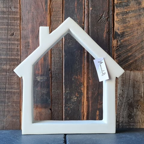 Myytävänä Amanda b'n keskikokoinen mangopuinen talo/koriste pöydälle, hyllyyn tai vaikka ikkunan väliin. Yhdellä puolella valkoinen emalipinta