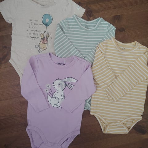Lyhyt hihaisia bodeja Lindex ja Kaks koko 80. Yksi pitkähihainen Newbie.