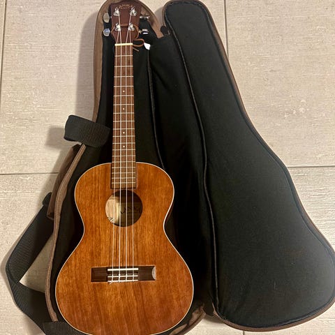 Aika hauska kapistus, käy myös lapselle ensisoittimeksi. Kuin kitara,mutta sointi ukulelemäistä. Pussin saa mukaan