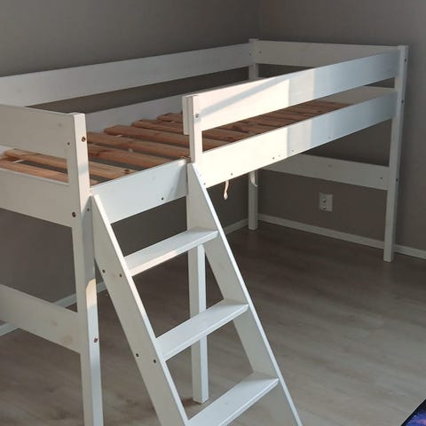 Myydään valkoinen lasten parvisänky. Sänky on tukeva ja sopii loistavasti pieneen huoneeseen. Sänky on ostettu verkkokaupasta.