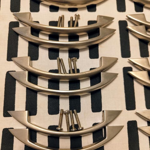 Myydään 22kpl, sirolinjaista hiukan retrohenkistä Beslag Design 1353 lankavedintä, joiden pituus on 142 mm ja väri nikkeli. Hyvä kuntoisia.