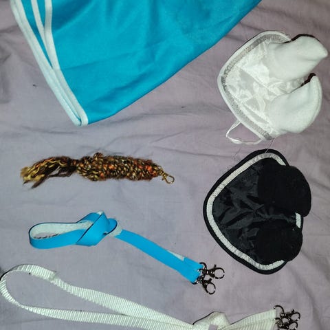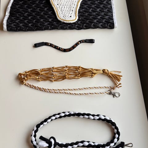 Hyväkuntoiset varusteet, riimujen pituudet 42cm, 74cm ja 120cm.