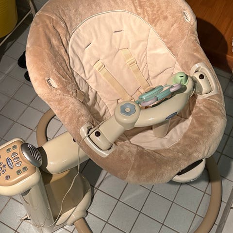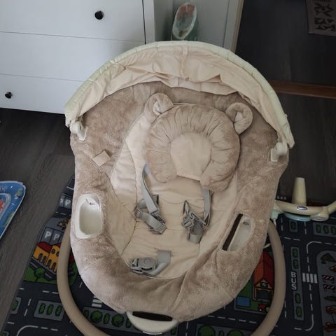 Graco -koliikkikeinu vauvoille. Keinuttaa sivusuunnassa, 12 eri vaihtitasoa ja erilaisia ääniä ja musiikkeja. Not the best, mutta ainakin meillä tipauttanut hyvin kierrokset ja ollut vanhemmille oiva apuri esim. aapupaloihin ja ruoka-aikoihin kun tarvitsee hetken molempia käsiä.