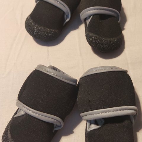 Uudet, pari kertaa kokeillut pienen koiran tossut, jotka ovat selän päällä kiinni toisissaan.