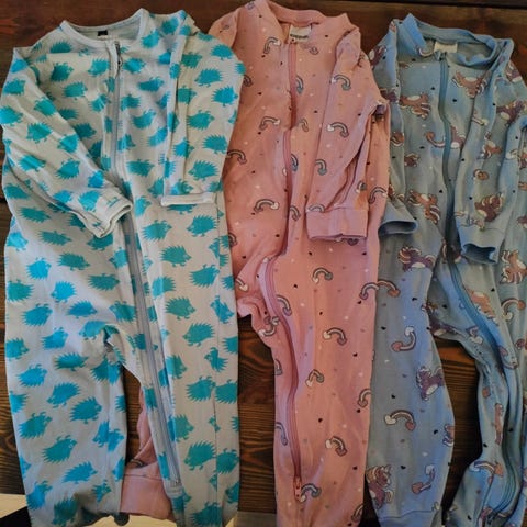 Pehmeät pyjamat, ei reikiä tai tahroja.