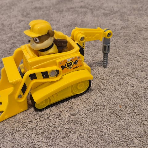 Tosi tykätty ja leikitty. Vipuun saa kiinni koukun tai purkupallon. Pelastuskoukussa puremajälkiä 🙈