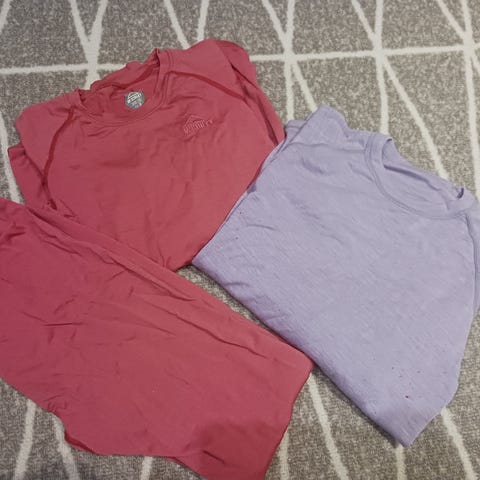 Poikien siniharmaat merinovillakerrastot, ylä- ja alaosa. Ilmoitettu koko on 158/164, mutta pojan mielestä koko on hieman liian pieni, joten siksi koko ilmoitettu yhden koon pienempänä. Pestyt, pari kertaa käytetyt.