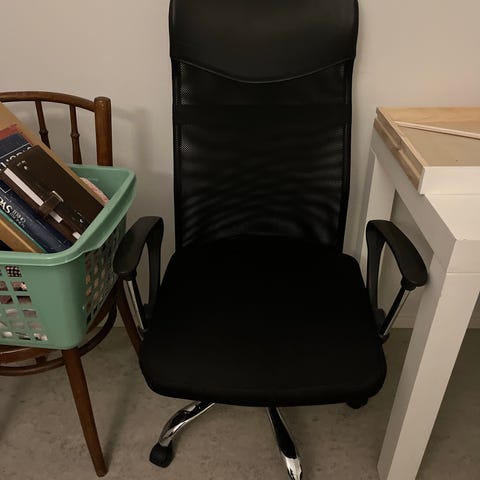 Annetaan työtuoli. Mekanismi toimii. Narisee kun istuu ja esim vaihtaa asentoa. Kun nojaa taaksepäin niin vähän kaartuu oikealle. Muuten hyvässä kunnossa.