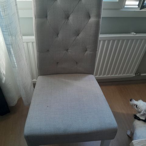 Punavalkoinen tuoli, tuntematon valmistaja, normaalikokoinen. 20 € / kpl tai 50 € / 3 kpl. Tampereen keskusta, Tuomiokirkon vieressä.