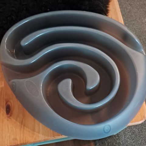 Keraaminen hyväkuntoinen koiran ahmimisenestokuppi, halkaisija n. 15,5 cm. Ostettu käytettynä omalle koiralle, mutta ei tullutkaan käyttöön.