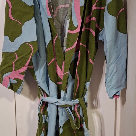 2XL vaaleanpun/harmaaraidallinen pehmeä kylpytakki jäänyt vähälle käytölle.
