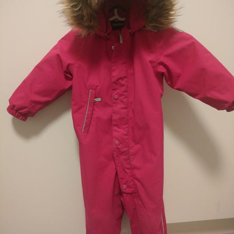 Pinkki Reima vk-haalari (Marte mid?) koossa 92. Tätä jo enemmän käytetty, polvissa ja pepussa tummentumaa ja pehmentymään. Ei kuitenkaan reikiä tai muuten rikki mistään. Ei pidä täysin enää vettä, kuiville syys-/kevätpäiville tai viileille kesäpäiville oikein toimiva rymyhaalari. Irrotettava huppu.