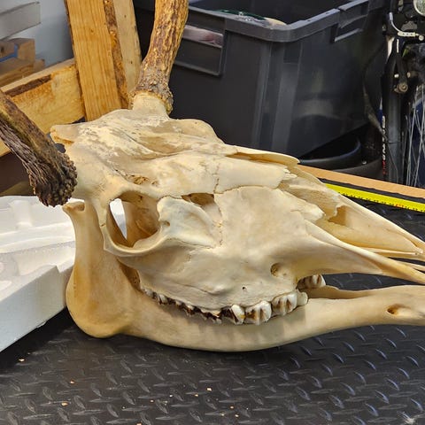 Myydään hieno hirven kallo, huutokaupasta aikoinaan huudettu, nyt yhteen muuton alla myyntiin. Täydellinen esim miesluolaan tms. Sijaitsee Hattulassa, toimitus onnistuu lähialueelle korvausta vastaan. Postitus tuskin onnistuu.