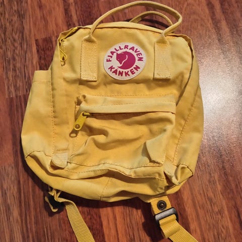 Myyntiin auringonkeltainen, unisex Fjällräven Kånken pikkureppu (F23510). Tilavuus 16 litraa.