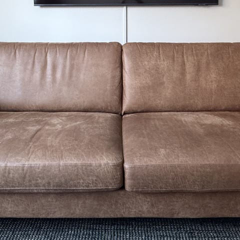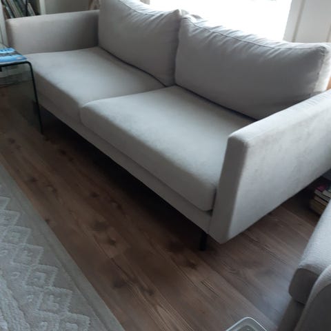 Kuvan mukainen ehjä sohva, ostettu Vekestä 2023. Väri hiekka.