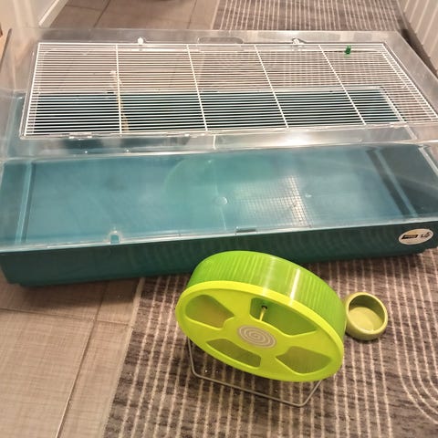 Kaikki olleet hyvin vähällä käytöllä. Mökki, vessa ja juoksupyörä erinomaisessa kunnossa. Olleet varahäkkinä ja tarvikkeina loma-asunnolla.