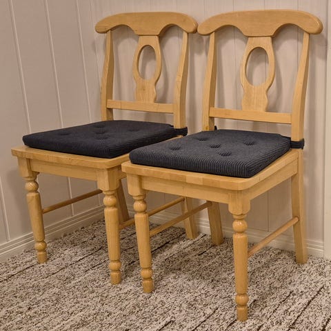 3 muuta tuolia on pinnassa valitettavasti ruostetahroja, joita en ole saanut pois hinkkaamalla. Siksi hinta alhainen. Jos laittaa tuolinpäällisen/tyynyn peitteeksi ei niitä huomaa.