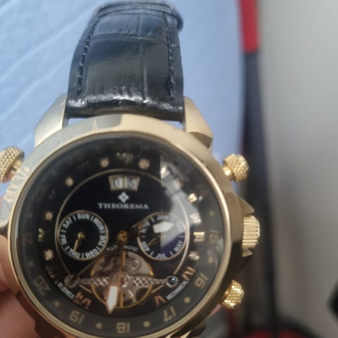 Kuvan mukainen Theoreman toimiva kello. Ostettu 2012 ja ollut ranteessa muutamia kertoja. Mukaan tulee kaikki mitä silloin tuli kellon mukana, myös alkuperäinen pahvipakkaus.