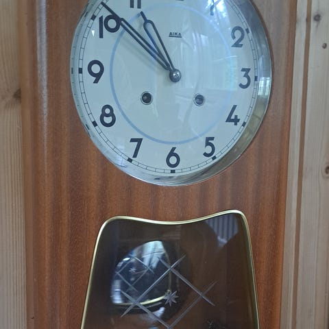 AIKA merkkinen vedettävä seinäkello. Toimii, täysin moitteettomassa kunnossa, upea yksilö. Vetoavain on.