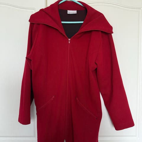 Kaunis letitetty, punainen neuletakki vyöllä, koko 40.