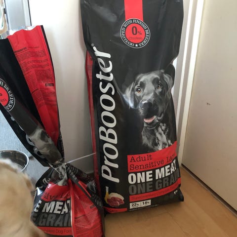 Avattu viikko sitten ja vajaa kilo syöty eli melkeinpä täysi säkki. Parasta ennen 17/4/2027
