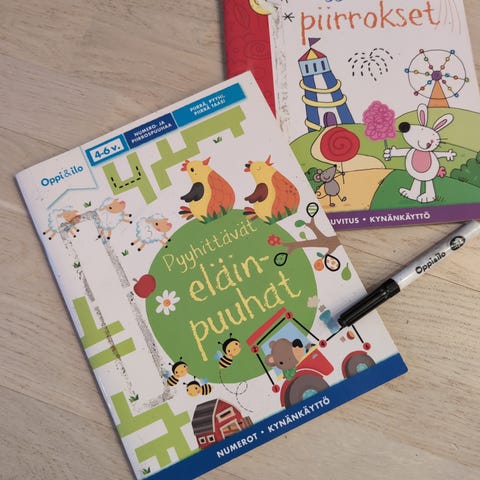 Vain kerran käytetty maalaus- ja piirustussarja sisältää värikynät, vahaliidut, vesivärit, siveltimet ja muita piirustusvälineitä kannellisessa alumiinilaatikossa. Jäänyt käyttämättä, kun väriä ja pensseliä on jos jonkinlaista jo ennestään.