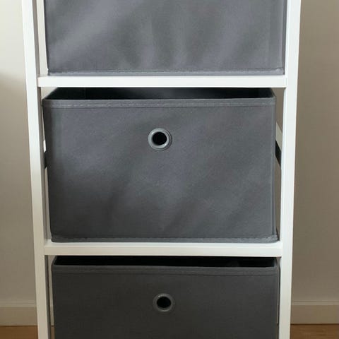 Kallax laatikot ovat tiukat, jyskin omat laatikot mahtuvat paremmin (33x32x33.5cm).