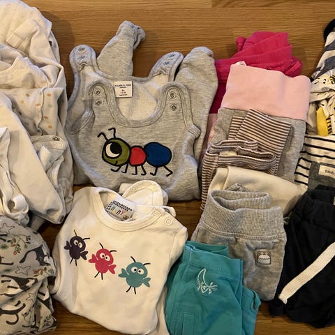 15 bodya, 4 housua (yhdet kokoa 44), 2 myssyä ja Ted Baker asusetti. Suurin osa on erittäin hyvässä kunnossa. Kaikki ovat ehjiä ja napit toimivat hyvin. Yhden lapsen käyttämä.