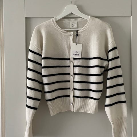 Myydään Almada Coco neuletakki, stripe (cream/black), koko M. Ollut vain muutaman kerran päällä ja hyvässä kunnossa.