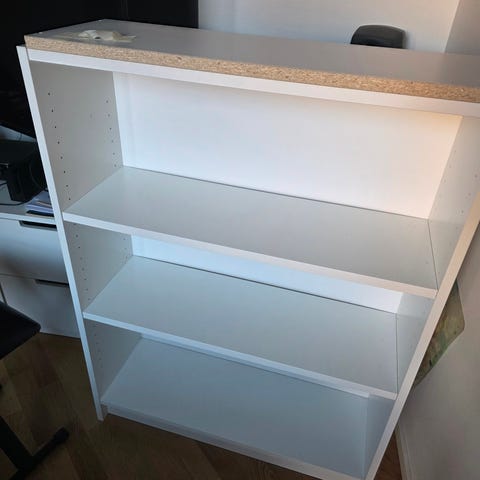 Hinta sisältää kirjahyllyn ja korotuspalan. Sivussa muutama reikä, jotka näkyvät kuvissa. Vain nouto.