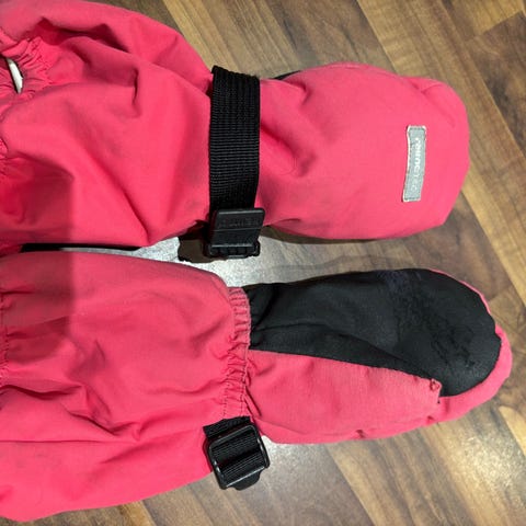 Tosi hyvässä kunnossa olevat talvirukkaset, näitä käytetty varahanskoina niiden monien joukossa. Jälkiä tai kulumaa en huomannut pl heijastimessa.