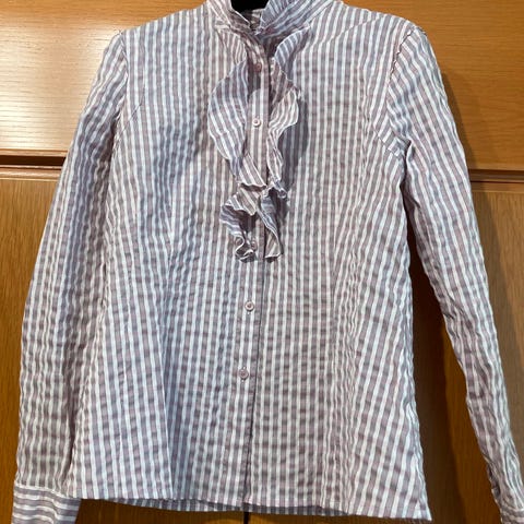 Comma naisten pusero, koko 38. Puserossa on pitkät hihat ja joustinneulos helmassa ja hihansuissa. Hieman läpikuultava kangas, puseron alla kiinni valkoinen toppi. Hyvässä kunnossa.