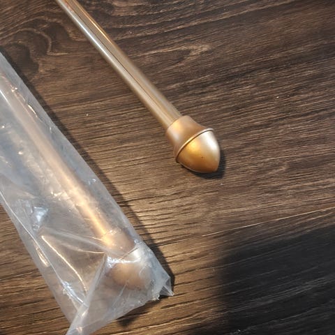 Kaksi kappaletta kevyitä valkoisia verhotankoja. Ruuvit ja kiinnikkeet mukana (pienet proput puuttuu).