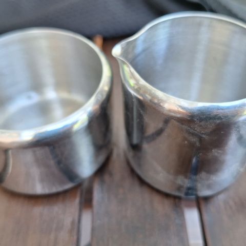 Hyväkuntoisia, kannellisia, tukevilla kahvoilla varustettuja teräsastioita. Rosteria. 10-13