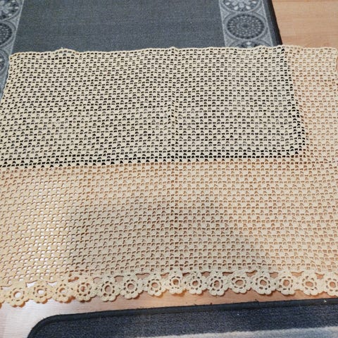 Punainen kappaverho ja pinkit satiinityynyliinat. Toinen koristetyynyliina vielä paketissa. Tyynytliinat 50x50cm. Kappa perus ikkunan levynen.