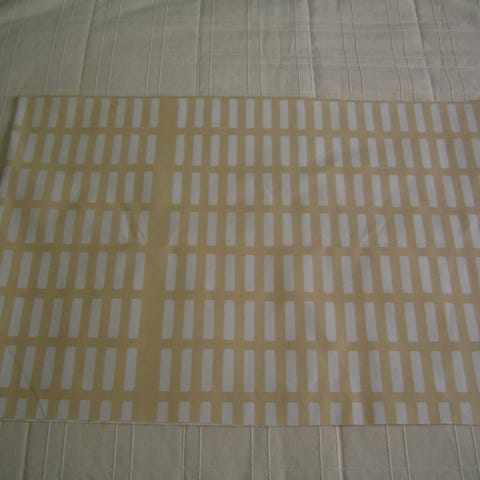 Leveys 150, pituus 232. Käänteet ylä 1.5 cm ja ala 5 cm. Sivut käännetty ja ommeltu myös.