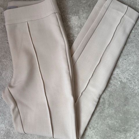 H&M housut harmaassa värissä, naisten koko S. Materiaalina on 86 % viskoosia, 10 % polyamidia ja 4 % elastaania.